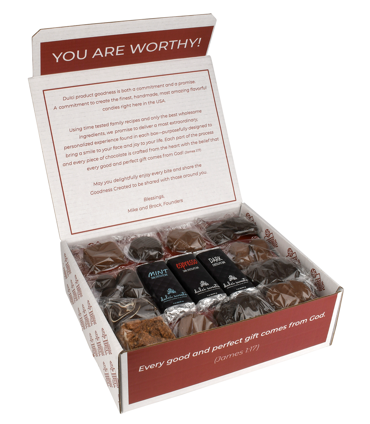 This generous gifting collection features 3 bags of our top-selling products and 12 individually wrapped Dulci Sweets chocolate treats. Enjoy three fan-favorite cookie creations, three exclusive signature bars, and three chocolate-caramel dipped coffee spoons, all crafted to perfection.